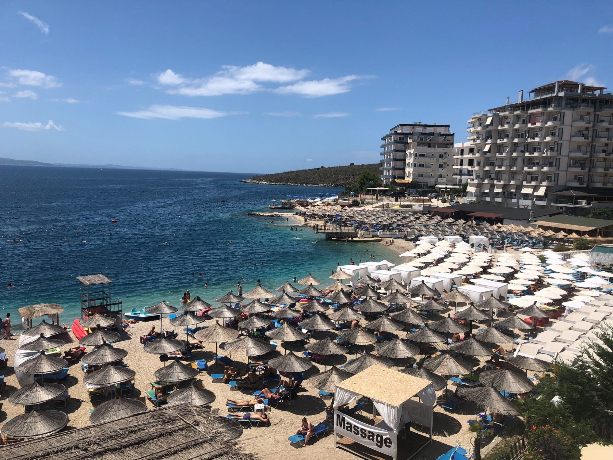 Most travelers stay for only a night or two in Saranda. We stayed for almost a week. It’s probably because we were still on “party mode” so we didn’t feel like doing much exploring. We still partied until the wee hours of the morning and usually woke up late with a hangover, so we were perfectly content just lying by the beach all day. When the sun sets, the cycle repeats. So for those looking for detailed guides, I won’t be able to give you that. We did visit two nearby attractions though when we rented a car for one day– Ksamil (another beach town) and the Blue Eye (a deep natural spring).