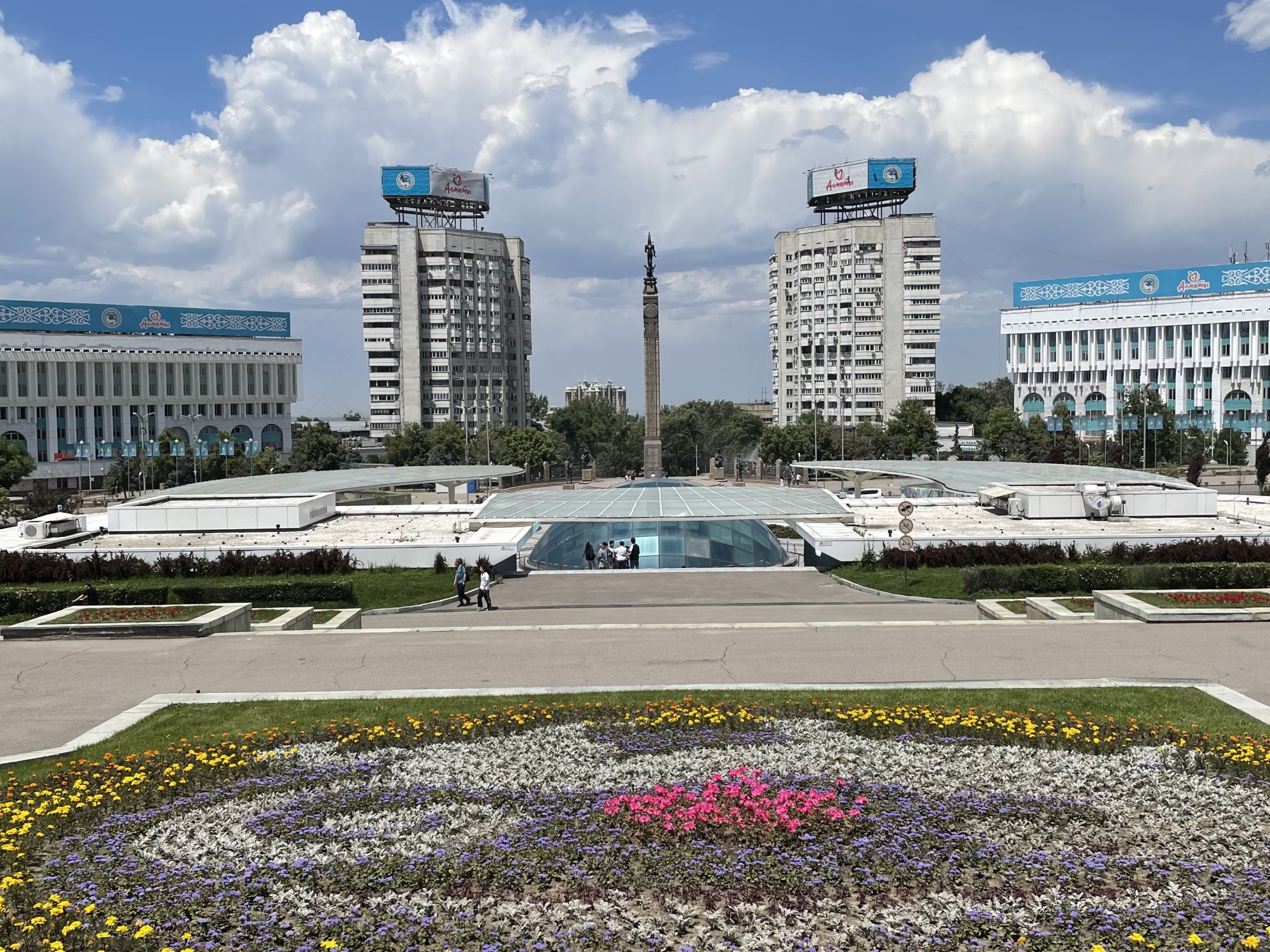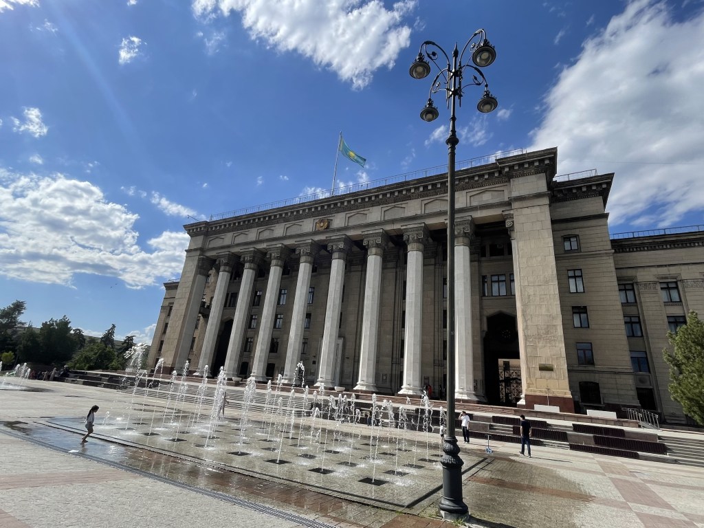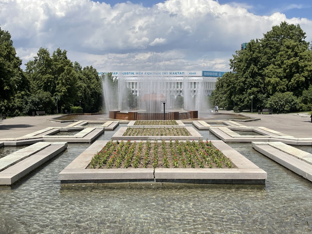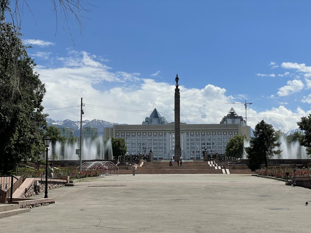 For sightseeing, I’d suggest starting at Republic Square, the main square in Almaty. Here you’ll see the Independence Monument, the mayor’s office, and a couple of beautiful parks.