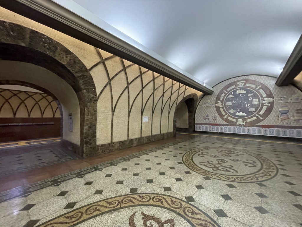 We arrived at the Sayran Bus Terminal at around 4:30 PM. This is Almaty’s long distance bus station. There are ATMs here so getting your hands on some local currency won’t be a problem. I saw a currency exchange office but it was closed. I’m not sure if they’re open earlier in the day, or if they’re closed permanently. There’s also a shop that sells prepaid SIM cards from all the major carriers. I’ve been told that Beeline has better coverage in remote areas so that’s what I bought. I just wanted to get to the hostel as soon as possible so I booked a ride via Yandex. Yes, it’s still incredibly cheap in Kazakhstan. If you’re on a very tight budget though, you can take a local bus to your destination for only 200 Tenge each way (about 40 US cents). If you plan on staying long in Almaty, it would be even cheaper if you have an Onay Card. The card itself costs 500 Tenge (about USD 1), but each bus ride only costs 100 Tenge if you use this card to pay! I’ve been told that these cards are sold in many new stands. You can’t buy these at Metro Stations— they only sell Metro cards at Metro Stations, not bus cards. Speaking of the Metro, it’s not as extensive as the one in Tashkent. There’s only a couple of stops and these are far apart. But these stations are also beautiful, I’d suggest checking them all out if you have time to spare.