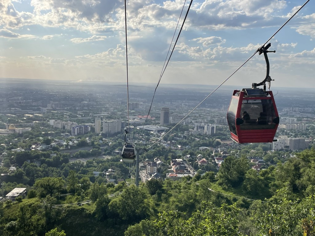 Late in the afternoon I’d suggest heading to Kok Tobe Hill. It’s basically a mini theme park on top of a hill. There are several rides as well as a mini zoo. It offers panoramic views of the city and an excellent view of the sunset. You could walk up the hill on your own, or you could ride a cable car for 1000 Tenge (about USD 2) each way. A lot of folks ride a cable car up the hill then just walk down to save some money. You just buy a ticket at the Kok Tobe building right by Hotel Kazakhstan. Keep in mind that a lot of people go to Kok Tobe to see the sunset so the line could be long. It would be best to head up at around 4 PM so you wouldn’t miss it.