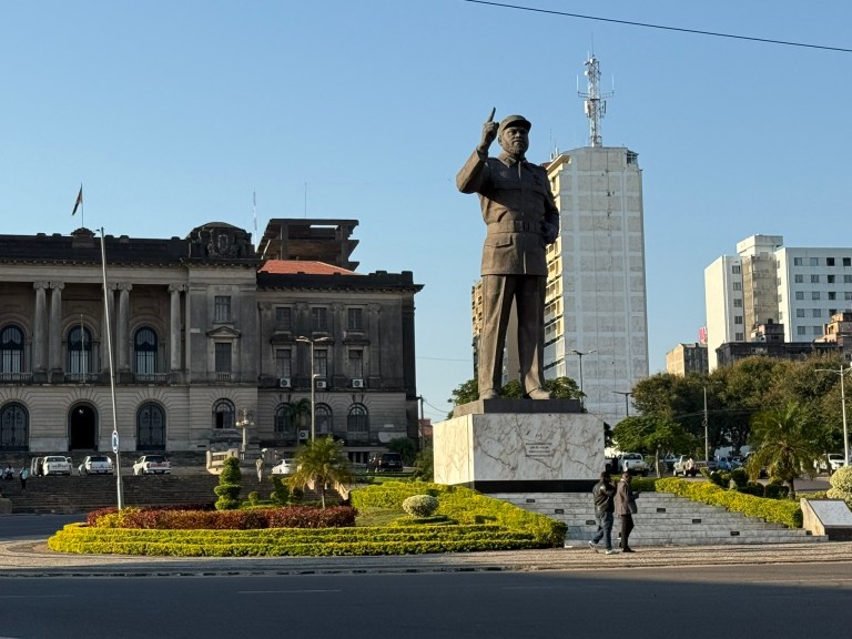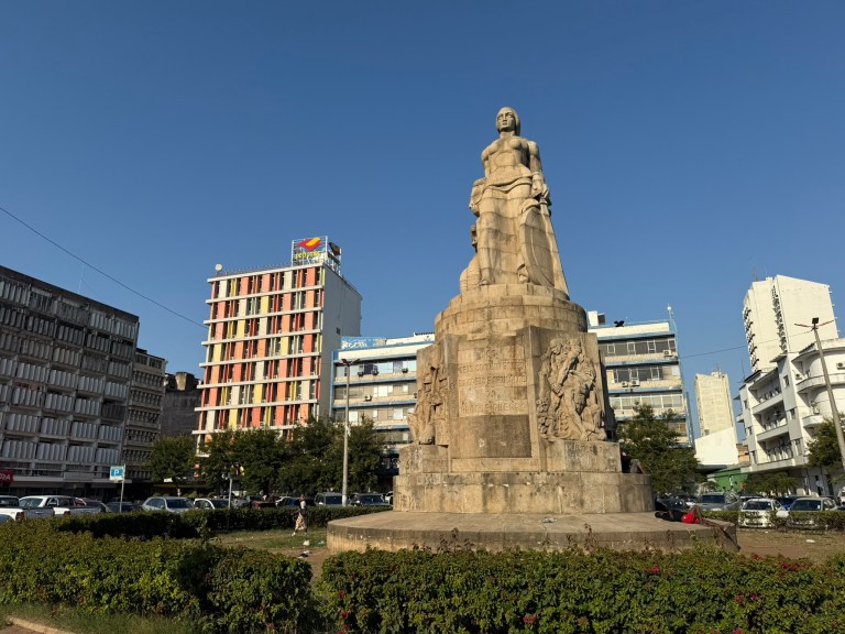 Praça da Independência. On the foreground is the bronze statue of Samora Machel, the first president of Mozambique. The town hall is in the background.